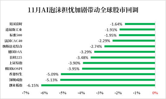图1:11月份对人工智能泡沫的担忧加剧,引发全球股市回调。