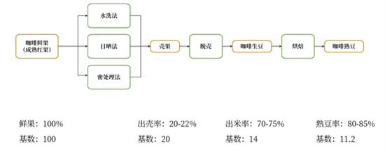 图2 加工生咖啡豆到熟咖啡豆的转化率